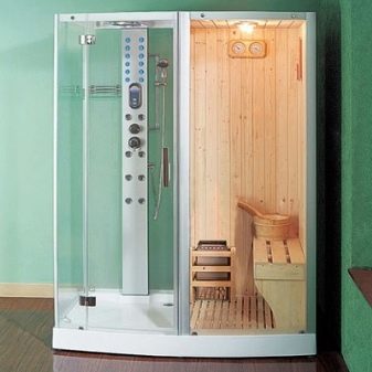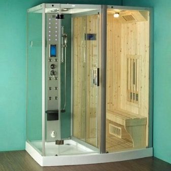 Предлагат се и комбинирани модели с отделни отделения за душ и сауна. При такива конструкции парната баня може да бъде единична или двойна..