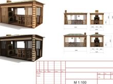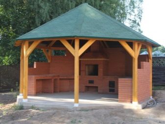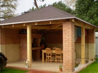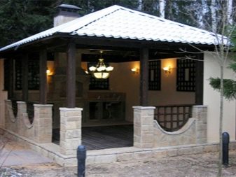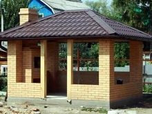 - Отворен тип. В такива сгради няма врати, стени или прозорци. Конструкцията се състои от стелажи и покрив, опиращ се върху тях. Можете да инсталирате барбекю или мангал под него..