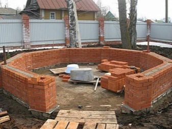 За полуотворена тухлена беседка ще е необходима здрава подсилена основа. За да направите това, ще трябва да направите яма с дълбочина метър, предвиждаща бъдещи инженерни мрежи. След това се прави кофражът, в ямата се изсипва петнадесет сантиметров слой натрошен камък-това е така наречената възглавница. Натрошеният камък остава подравнен и трамбован.