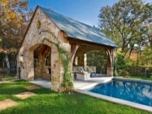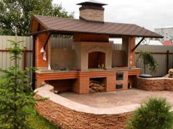 - Полуотворена тухлена беседка с печка, метални опори, поддържащи покрива, и каменна облицовка се възприема като надеждна, солидна и уютна конструкция. Под неговия покрив ще искате да прекарате време в приятелска компания до късна есен.