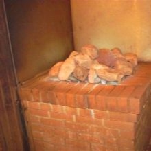 Благодарение на дебелината на тухлите и масивните камъни, стаята ще се затопли за дълго време. След края на процедурата стаята се проветрява, вода се излива върху камъните, за да се отстранят саждите. След почистване стаята е готова за нови процедури.