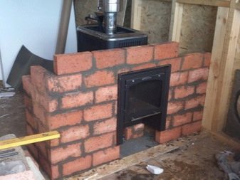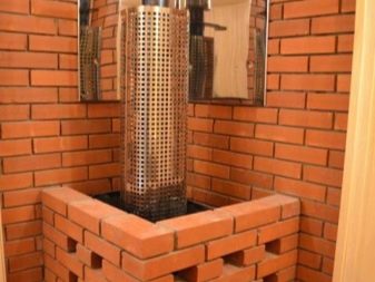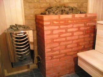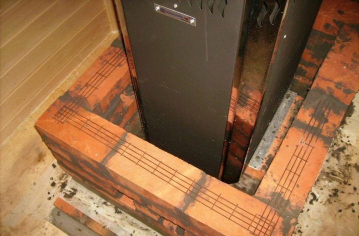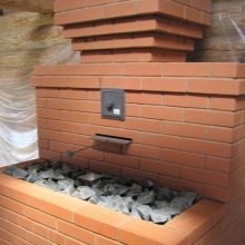Близо до стената срещу рафтовете в парната баня трябва да се издигне тухлен продуктд. Когато създавате проект, трябва да вземете предвид това разстоянието между отоплителната част на уреда и мястото, поддържащо горенето, трябва да бъде най -малко 40 cm. При избора на специална защита, например от азбестов картон, разстоянието може да бъде намалено до 20 см.