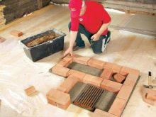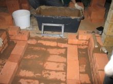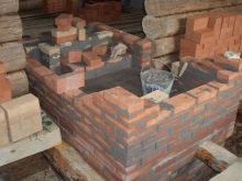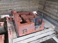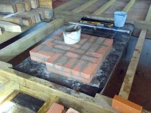 Шамотните тухли се използват за образуване на горивната камера. След горивната камера се монтира чугунена печка, върху която по-късно ще се поставят камъни за банята.