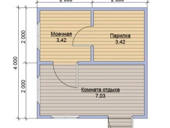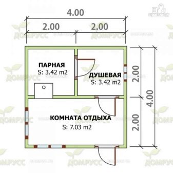 Основният недостатък на такова разположение е липсата на стая за почивка или съблекалня, където можете да отидете да се отпуснете след гореща пара.