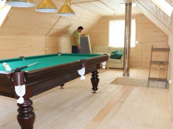 Ако площта на сайта позволява, можете да добавите таванско помещение, което ще бъде отлично място за добра почивка и съхранение на аксесоари за баня. В този случай си струва да обмислите входа от терасата директно в съблекалнята. Този дизайн ще ви позволи да се насладите на процедури за баня и релаксация след нея по всяко време на годината. Освен това дори на най -компактната тераса можете да поставите маса и столове за комфортен престой..