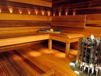 Той излъчва аромат на иглолистни дървета. Има релаксиращ ефект върху човешкото тяло. Единственият нюанс в това покритие е изборът на истинско кедрово дърво. Тъй като подплатата “под кедър” с лошо качество може да излъчва смола, което влияе неподходящо както на външния вид на стаята, така и на удобното посещение на посетителите.