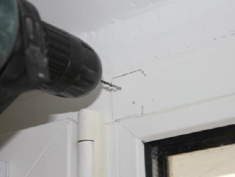- След това се пробиват дупки и се прикрепват крепежни елементи. Не пробивайте дълбоко, тъй като може да се направи проходен отвор. Ако фиксирането се извършва директно върху пластмасата, трябва да се използват специални самонарезни винтове..