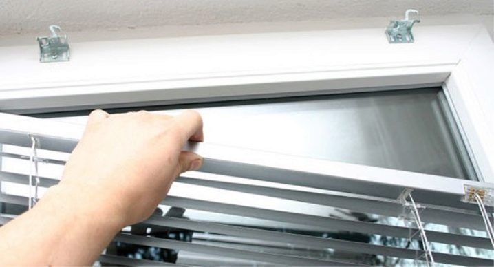 При всяка система за закрепване е необходимо да запомните как са отстранени щорите, тъй като те ще трябва да бъдат окачени в обратен ред. На пластмасови прозорци и таванско помещение щорите са прикрепени към специални скоби с помощта на гаечни ключове, които бяха споменати по -горе. Този ключ също се завърта по часовниковата стрелка за фиксиране на филтъра..