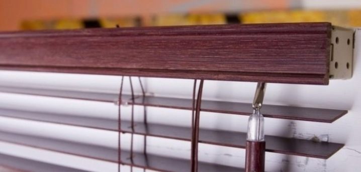 - Стандартни щори, които имат хоризонтални алуминиеви ламели. В горната и долната част на крилото е необходимо да закрепите скобите, а между тях издърпайте кабела по двойки.