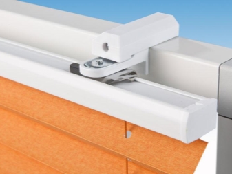 След залепване на частите от двете страни е необходимо да се монтират страничните скоби и платното директно върху тях. Този метод е много удобен и ви позволява да не повредите рамката. Но основният му недостатък е незначителната здравина и издръжливост. Ако тази опция е още по -малко подходяща за фиксиране на долната шина, тогава тя не може да се нарече много успешна за фиксиране на вала с платното. Продуктите могат просто да паднат под собственото си тегло. Нещо повече, с течение на времето адхезивните свойства намаляват, така че това е доста краткотрайно решение..