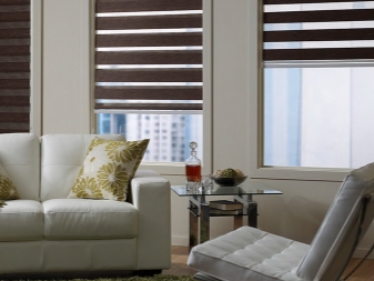 Има отворени и затворени щори ден / нощ. Отворените завеси са подходящи както за домашен интериор, така и за работни помещения. Тъканта в конструкцията се навива върху непокрит вал, без да се фиксира отстрани. В резултат на това завесата виси свободно. Хоризонталните ивици визуално увеличават прозорците и стаята изглежда по -просторна.