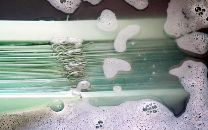 Ако върху тъканта на щорите попадне мазнина или мръсотия, продуктът се поставя в сапунен разтвор и се избърсва с четка. След това щорите се изплакват и изсушават, без да се сгъват. Не е желателно да използвате почистващи препарати, съдържащи хлор и абразивни прахове по време на почистването. Това може да повреди текстурата и цвета на тъканта..