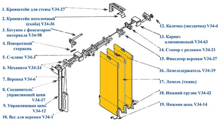 Такива щори от тъкан са тесни ламели по протежение на прозореца. Те се считат за прародител на обикновени парчета плат, които преди това са били окачени на прозорци и врати.. Този тип завеси се състои от: