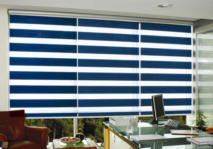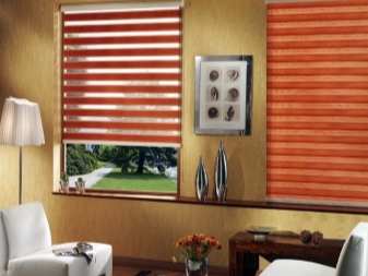 Говорейки за разновидностите на платнени завеси, не може да не споменем този тип. Отличителната му черта е, че ламелите са разположени вертикално, докато едната е по -светла на цвят, а другата е по -тъмна. Използването на такива щори ви позволява да създадете ненадмината и уникална атмосфера в стаята. Такива завеси могат да бъдат както на целия прозорец, така и само на един от неговите отвори. В този случай си струва да знаете, че някои от ламелите са прозрачни, а някои изобщо не пропускат светлина..