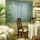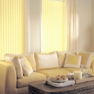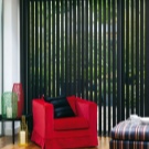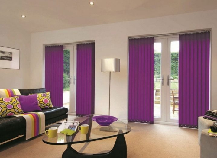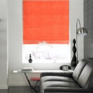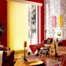 Вертикални щори големи размери и приятен оранжев цвят помагат да се украси красиво и стилно изхода към балкона. В същото време те създават приятен здрач в самата стая. Цветът на такива вертикални завеси може да бъде абсолютно всеки, докато може да бъде или в общата цветова схема, или да се откроява силно от нея, превръщайки се в ярко петно в интериора.