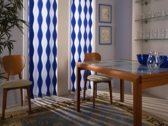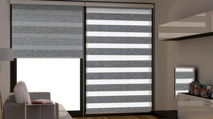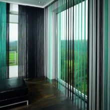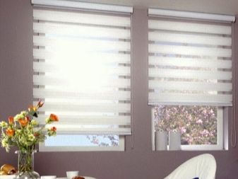 Говорейки за разновидностите на платнени завеси, не може да не споменем този тип. Отличителната му черта е, че ламелите са разположени вертикално, докато едната е по -светла на цвят, а другата е по -тъмна. Използването на такива щори ви позволява да създадете ненадмината и уникална атмосфера в стаята. Такива завеси могат да бъдат както на целия прозорец, така и само на един от неговите отвори. В този случай си струва да знаете, че някои от ламелите са прозрачни, а някои изобщо не пропускат светлина..