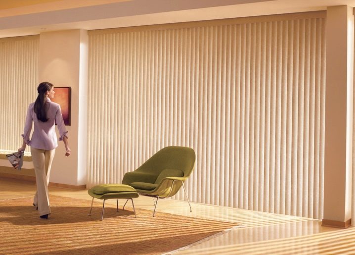 Всяка от разновидностите на такива вертикални щори от плат има свои собствени предимства, но всички тези разновидности имат общи предимства. Сред основните може да се открои възможността за регулиране на ъгъла на завъртане на ламелите и следователно за регулиране на степента на осветеност на помещението; такива завеси визуално помагат за разтягане на пространството и създават илюзията за висок таван.