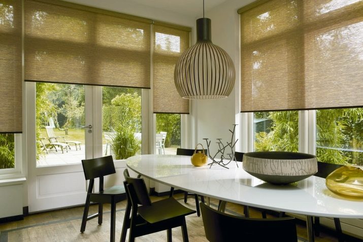Ролетни щори от плат, чиято плътност е доста висока са идеални не само за кухнята на градски апартамент, но и за декориране на прозорци в хола или на село. Те създават максимален комфорт и уют, като същевременно абсолютно не затрупват пространството на прозореца.