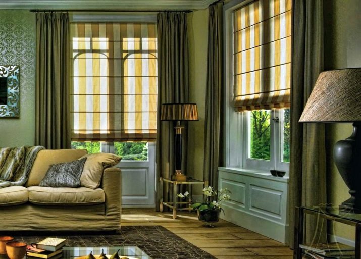 - Такива щори от плат могат да се използват както независимо, така и с различни видове завеси..