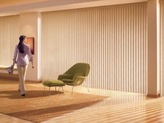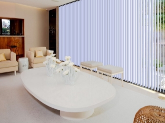 Те изглеждат стилни и модерни, а някои потребители наричат шума, който понякога се появява при пориви на вятъра, успокояващ. Много хора харесват звука на треперещи ламели и не го приписват на минусите. Много хора също отбелязват, че с помощта на вертикални щори можете визуално да направите стая с ниски тавани по -висока. Тази характеристика на вертикалните ламели е много популярна сред собствениците на малки апартаменти..
