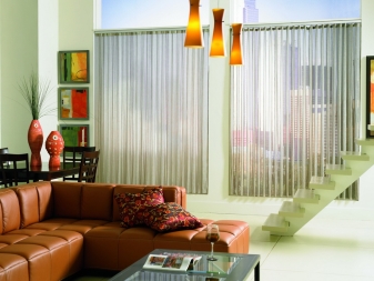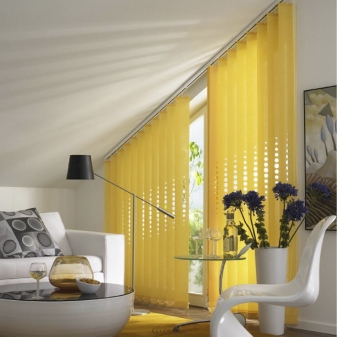 - Естетични качества. Ако хоризонталните щори се отличават с простота на дизайна, здравина и добра непрозрачност, което ги прави функционални, тогава вертикалните щори също са декоративни и можете да избирате различни аксесоари за тях..