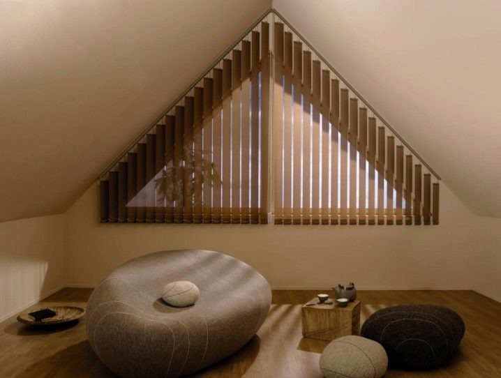 - Оригиналният дизайн на стаята. Вертикалните завеси изглеждат по -уютни и по -интересни поради способността си да пропускат светлина. Възможен е и вариант на абсолютно глухо припокриване.