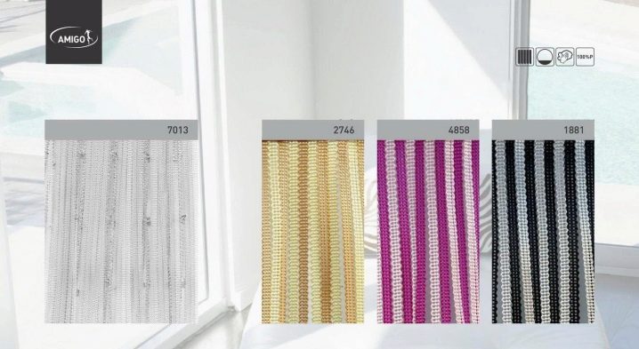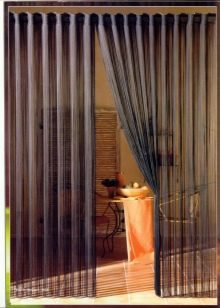- “Струна” (бриз, дъжд). Интересен вид плат за прозорци, който се състои от резба (въже) ламели. Те пропускат лъчите на разсеяна светлина и играят ролята на декоративен елемент в интериора, но в същото време са достатъчно плътни, за да се справят с функцията на завесите. Основната разлика от дебелите завеси е, че нямат тежести в долната част. “Пискюл” от въжета пада свободно на пода.