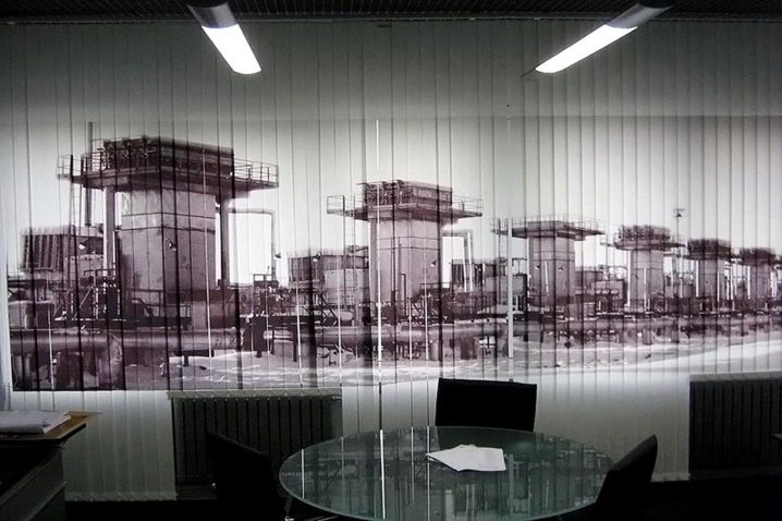 - Впечатляващ печат на снимки. Цветният печат изглежда по -органичен на вертикалните щори поради по -голямата площ и декоративните свойства на тъканта.
