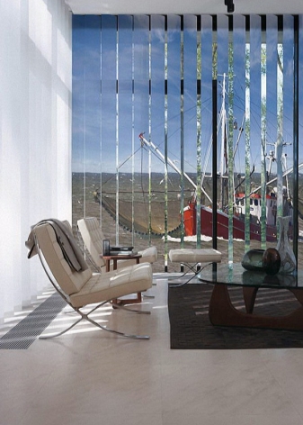 - Огледално. Отразяващата повърхност на прозореца е смело и необичайно решение в дизайна на стаята. Това е мощна техника за визуално увеличаване на пространството и едновременно декориране на прозореца. В същото време те изпълняват допълнителна функция през горещия сезон – отразяват UV лъчите, предотвратявайки загряването на помещението. „Огледално“ е конвенционално име. Всъщност ламелите не са изработени от тежко стъкло, а с използването на пластмаса и отразяващ филм..