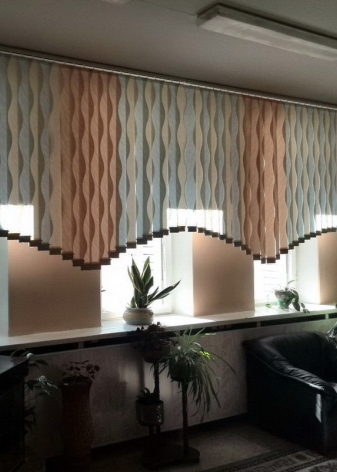 - Богата гама от цветове и текстури. Поради разнообразието от материали, вертикалните щори са представени с гладки и релефни покрития от абсолютно всеки цвят. В допълнение към факта, че ламелите имат триизмерен модел на повърхността, те са с променлива форма и могат да бъдат с гладък или вълнообразен ръб..