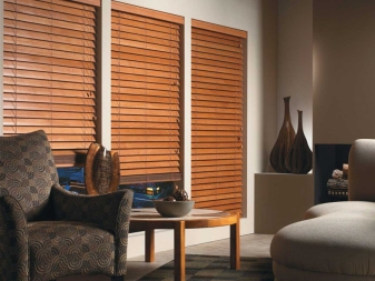 Дървените щори са рядък и скъп вид завеса. Обикновено това е канадска липа, бор, корк, бамбук.