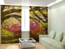 Наситеността на цветовете зависи от плътността на материала. На полупрозрачните завеси моделът изглежда леко размазан, но е красиво подчертан от лъчите на слънцето и светлината на нощните лампи. Това придава на изображението особен чар и го изпълва с магически блясък. При плътни щори печатът е по -ярък и ясен.