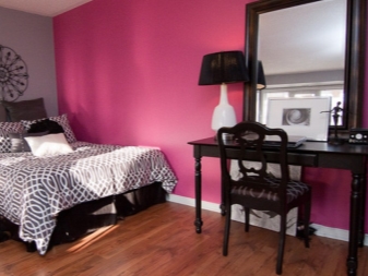 - Черното винаги е приятно комбинирано с бяло и розово.. Интериорът, проектиран с помощта на тази комбинация, е много подходящ за женска спалня..