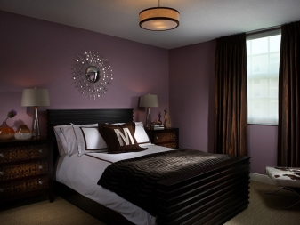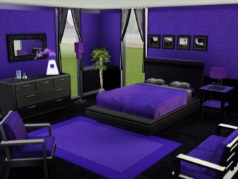 - Лилаво – цветът е студен, приспособява се към свежест и лека прохлада. Нюансите на лилаво се свързват с лятото, плодовете – къпини, боровинки, касис, сливи. Дизайнерите видяха художествената стойност в такъв нюанс на този цвят като боровинка. Стените на спалнята са боядисани в боровинки, а аксесоарите са черни. Този дизайн е оригинален и ще бъде специален за жителите му..