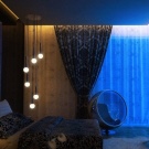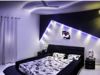 Когато изпълнявате дизайна на черна спалня, в никакъв случай не трябва да забравяте за осветлението. Особеността на такъв интериор е, че този цвят поглъща всички останали цветове от спектъра, което означава, че в стаята трябва да има много повече светлина, отколкото в обикновена светла стая. Един централен полилей няма да е достатъчен.