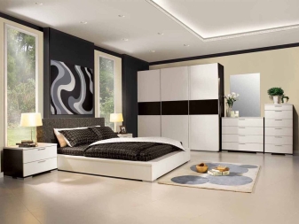 Интересен вариант за спалня в черно и бяло е модулното обзавеждане “Камила”, видео преглед на слушалките по -нататък.