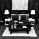 - Черно и бяло – класика. Комбинации от тези цветове в различни пропорции се използват навсякъде, никога не излиза от мода. Това са не само класически интериор, но и модни стилове, например минимализъм, хай-тек, таванско помещение. Ако предпочитате тази конкретна комбинация в дизайна на спалнята, интериорът ще се окаже контрастен и свеж. В такава спалня е необходимо да се създаде баланс между тези два цвята. Ако сте избрали интериор с черно легло (или просто табла), стената зад леглото трябва да поддържа бяло, а бял чаршаф може да бъде балансиран от черното на покривалото..