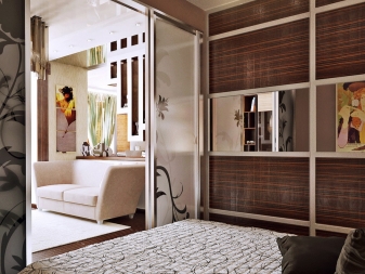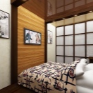 Простотата на дизайна, както и декоративните елементи на тези стилове визуално ще разширят стаята. Ако предпочитате експерименти, опитайте еко-стил. Ще има и високотехнологични детайли. Домакинските уреди могат да се поставят на стената, като се закрепят със скоби, което също ще спести такива ценни квадратчета. По-добре е да окачите вратата по време на ремонта, така че да се отваря в коридора. Добър вариант е плъзгащата се врата. За спалня от 9 кв. m идеална сгъваема врата в японски стил.