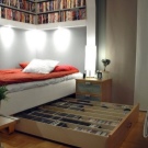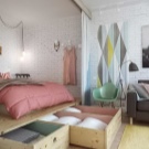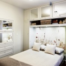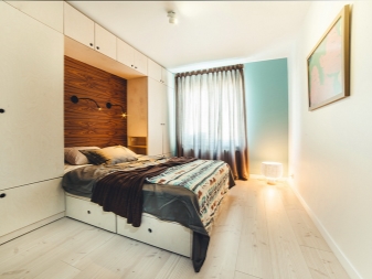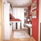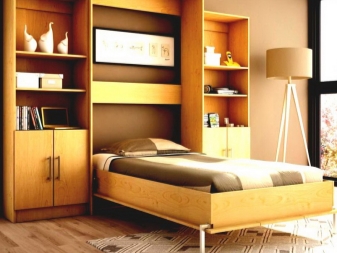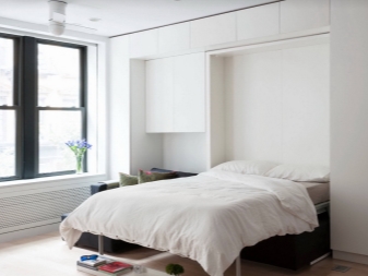 - Леглото на Мърфи. Добър пример за използване на пространството е вграден модел на легло, който има повдигащ механизъм (леглото на Мърфи е името на изобретателя). По време на нощен сън леглото стои на пода, може да се използва, сутрин се издига до равнината на шкафовете. Мястото, където леглото е стояло през нощта, може да се използва през деня за различни нужди.