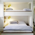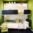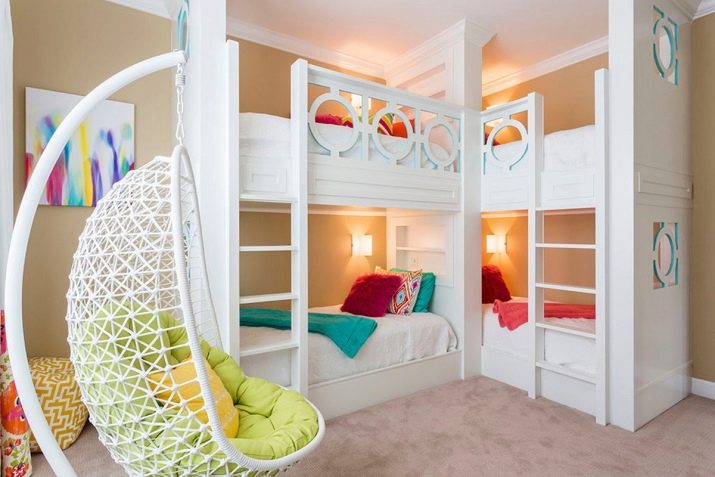 За подреждане на две места за спане в стая от 9 м2 се използват двустепенни конструкции. Понякога в детска спалня 3х3 м е необходимо да се оборудва място за спане за три деца. Има няколко идеи за такова поставяне в спалнята: