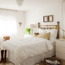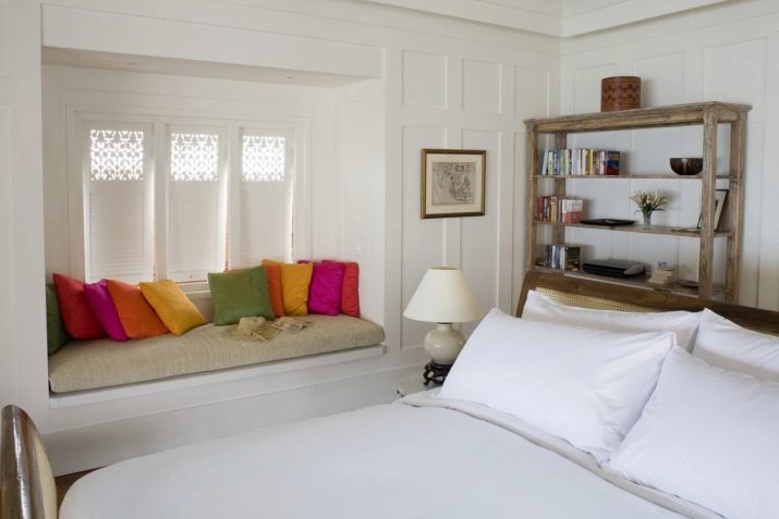Вярно е, че това не трябва да бъде изключително бяла спалня. Стерилният интериор дава усещане за прохлада, често е неудобно в него. 1-2 контрастни петна могат да съживят интериора. Детайлите от естествено дърво, като покривки, завеси или ярки декоративни възглавници, ще направят интериора по -уютен и жив.