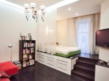- Друг интересен вариант за поставяне на легло ще бъде инсталиране на подиум, под който ще бъде разположено леглото. Тази идея ще се “впише” особено добре в апартаменти с високи тавани..