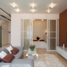 Необходимо е внимателно да се обмислят всички източници на осветление в стаята.. Използването на един общ полилей на тавана не е добра идея. Няма да е достатъчно да се осветява цяла стая, разделена на две отделни зони. Липсата на светлина може да повлияе неблагоприятно на зрението и да създаде общ дискомфорт. Източниците на светлина трябва да са отделни за всяка зона, трябва да има достатъчно от тях, тогава стаята ще се окаже обемна и ярка.