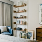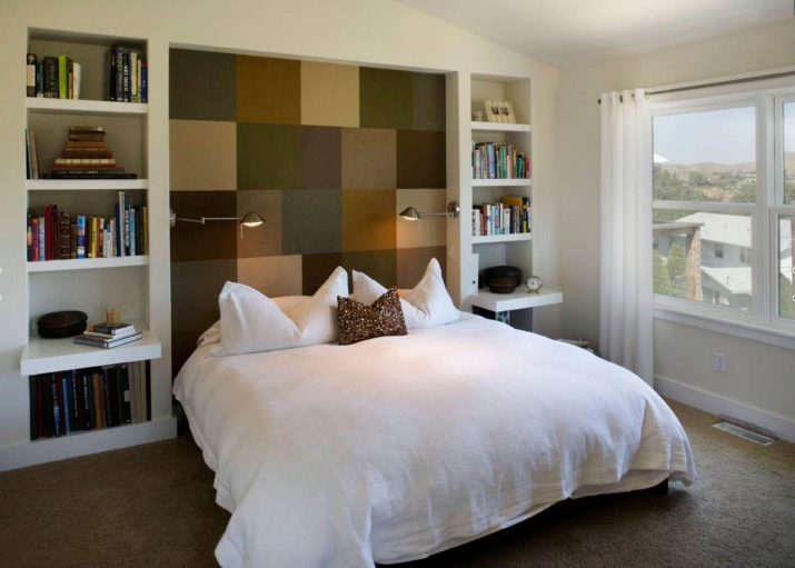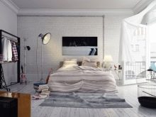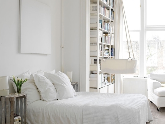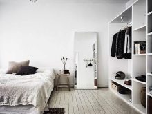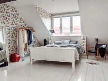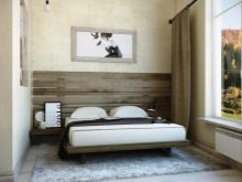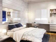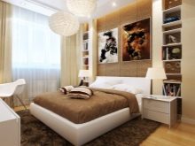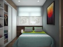 Гардероб, стелаж или шарнирни рафтове ще помогнат за решаването на проблема с малка площ.. Всички елементи в спалнята трябва да имат специфична функция, а не само да заемат място. Дизайнерите предлагат инсталирането на леглото на подиум, ако стаята има достатъчно високи тавани. По този начин всички необходими неща могат да бъдат скрити в отделни секции, инсталирани на подиума..