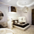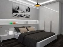 - Хай-тек е строгост и последователност, които използват съвременни технологии. Прохладната архитектура трябва да създаде богат цялостен вид на спалнята и да подчертае сериозността на нейните собственици. Довършителните работи и мебелите трябва да са бели, сиви или черни и изобщо да няма декорации.