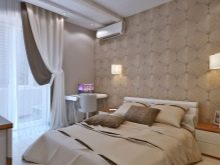 Малката спалня не бива да е скучна, затова не се препоръчва да се направи чисто бяла стая.. По -добре е да украсите тавана в бяло и да направите стените светло бежови с малък модел.