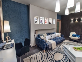 Осветлението трябва да бъде добре обмислено. По правило трябва да е възможно да се променя осветлението на стаята. Ярко осветление за хола и меко осветление за зоната за спане, допълнително осветление под формата на подови или стенни лампи, зониране на таванна светлина. Основното е, че светлината не пречи, но помага да се създаде необходимата за всеки случай атмосфера..