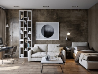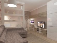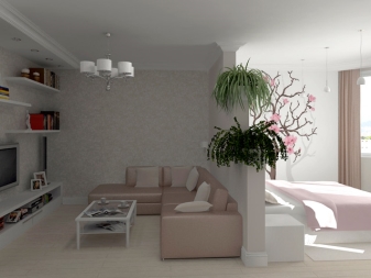 Има две възможности за оформление на спалнята-хола. Първият е да разделите стаята на две независими зони.. Активната зона е холът. Той може да побере диван или фотьойли, малка мобилна маса, видео и музикално оборудване. Втората зона е зоната за почивка и сън. В тази зона има легло, нощно шкафче или тоалетка. В допълнение, стаята трябва да помисли за осветление и място за съхранение..