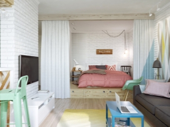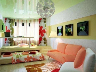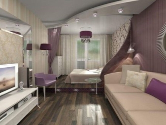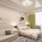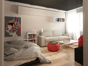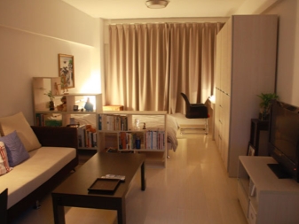 Има две възможности за оформление на спалнята-хола. Първият е да разделите стаята на две независими зони.. Активната зона е холът. Той може да побере диван или фотьойли, малка мобилна маса, видео и музикално оборудване. Втората зона е зоната за почивка и сън. В тази зона има легло, нощно шкафче или тоалетка. В допълнение, стаята трябва да помисли за осветление и място за съхранение..
