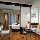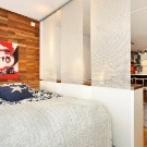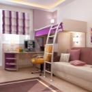 Ако е осигурено отделно място за спане, тогава е необходимо да закупите легло и нощно шкафче. По -добре е да поставите зоната за спане далеч от вратата към стаята, по -близо до прозореца или балкона. Тази област може да бъде ограничена с конвенционален дял. Нисък шкаф-скрин за съхранение на вещи, рафт може да служи като разделител на зони. Това може да бъде малка декоративна стъклена преграда с лазерен печат върху нея..